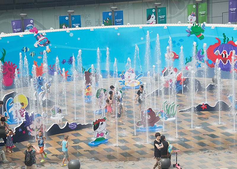 噴泉景觀可分爲旱地、水池、音樂、廊道、樓亭、造霧等多種型式,配以相對應的燈光飾景,爲遊客提供産生千變萬化的水景,噴泉聲、光、色、形俱美,使遊客得到水美的藝術享受。噴泉景觀主要應用于大型廣場、主題公園、人工、胡泊、遊樂場等場所使遊客在遊玩過程中有不可多得的全方位享受。